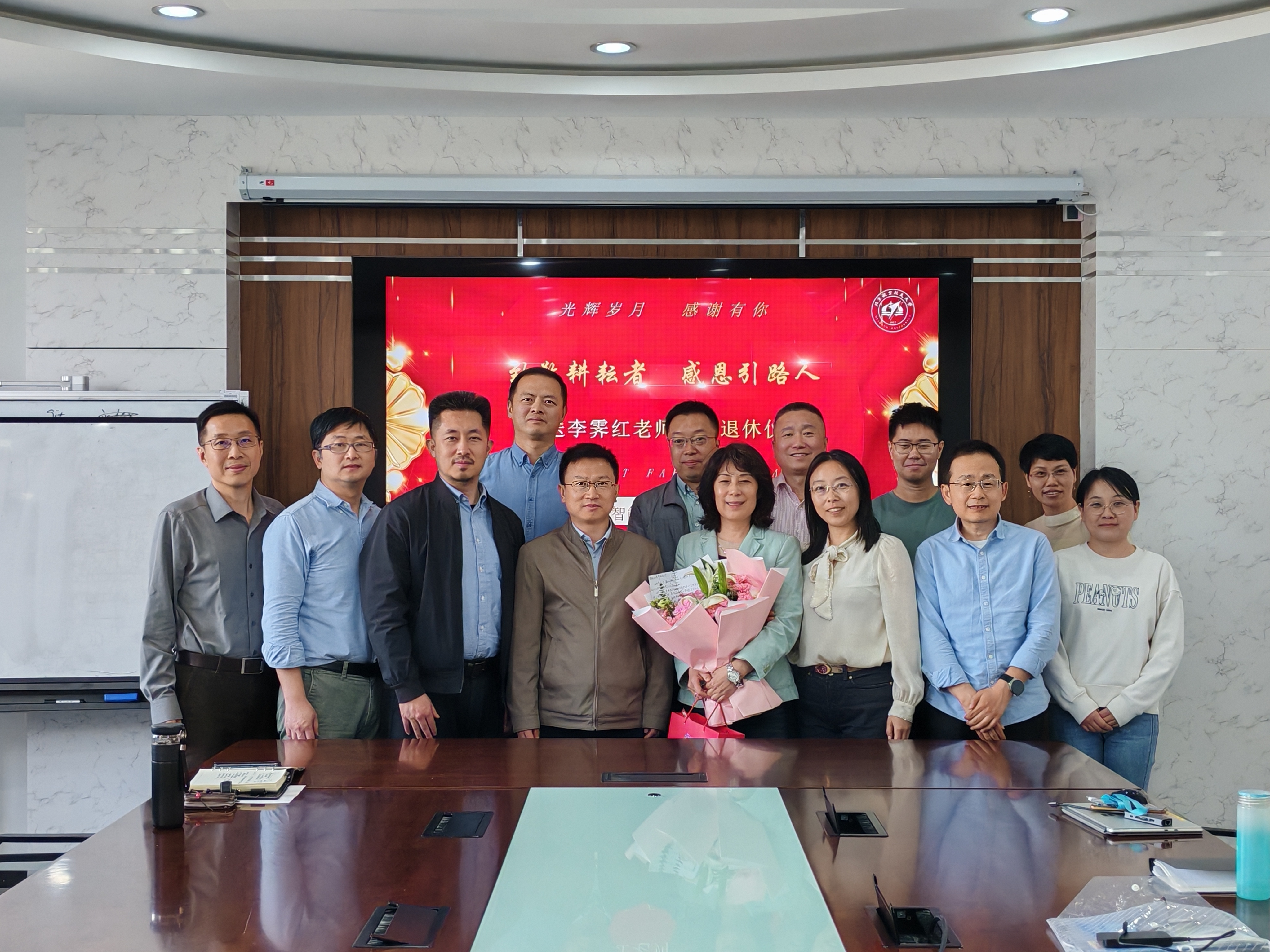 仪式的最后,查国清书记代表体系中心向李老师送上了鲜花和礼物。那束鲜花,如同李老师的人生,绚烂多彩;那件礼物,如同我们对李老师的祝福,情谊满满。李老师接过鲜花和礼物,脸上洋溢着笑容和感谢之意。这一刻,时间仿佛凝固,所有的感动、所有的敬意都凝聚在这一刻。