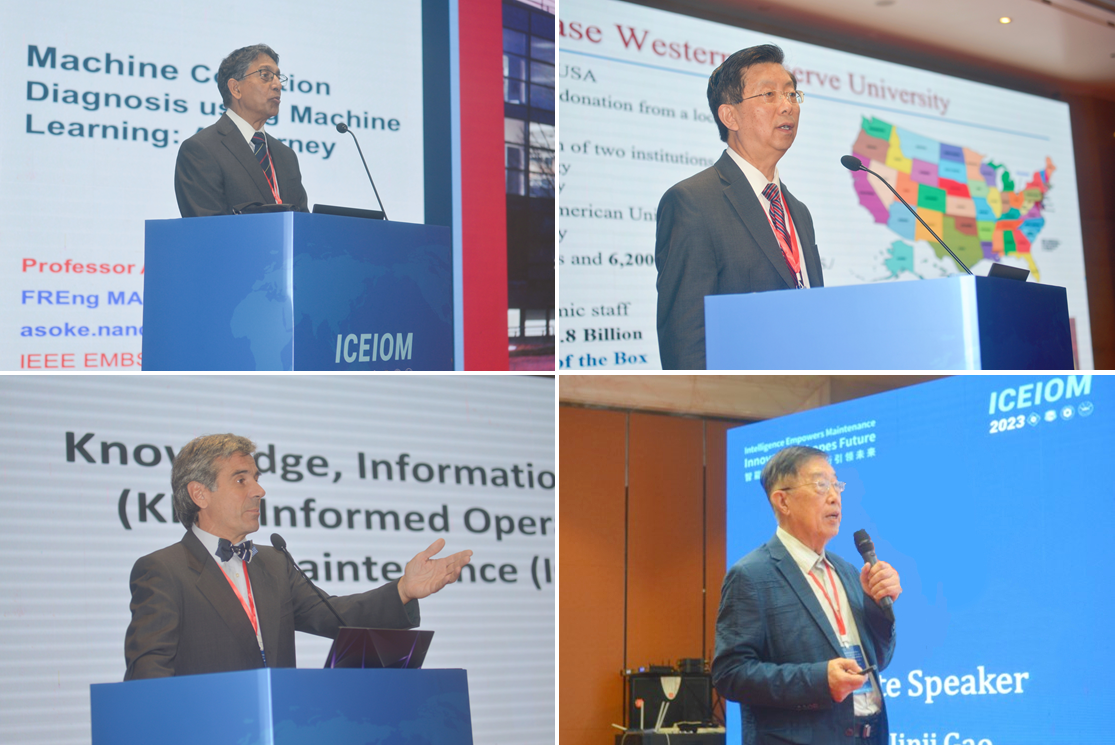 英国皇家工程院院士、布鲁内尔大学Asoke K. Nandi教授,国际电器与电子工程学会会士、美国机械工程师学会会士、美国凯斯西储大学Robert X. Gao教授,Humboldt Research Award获得者、米兰理工大学Enrico Zio教授,中国工程院院士、北京化工大学诊断与自愈工程研究中心主任高金吉教授,分别作了题为“Machine Condition Diagnosis using Machine Learning: A Journey”、“Intelligent Maintenance through Big Data Analytics”、“Knowledge, Information and Data (KID)-Informed Operation and Maintenance (IOM)”、“Artificial self-recovery enables intelligent maintenance development to equipment autonomous health”的精彩大会邀请报告。大会邀请报告分别由西安交通大学严如强教授、华南理工大学李巍华教授主持。