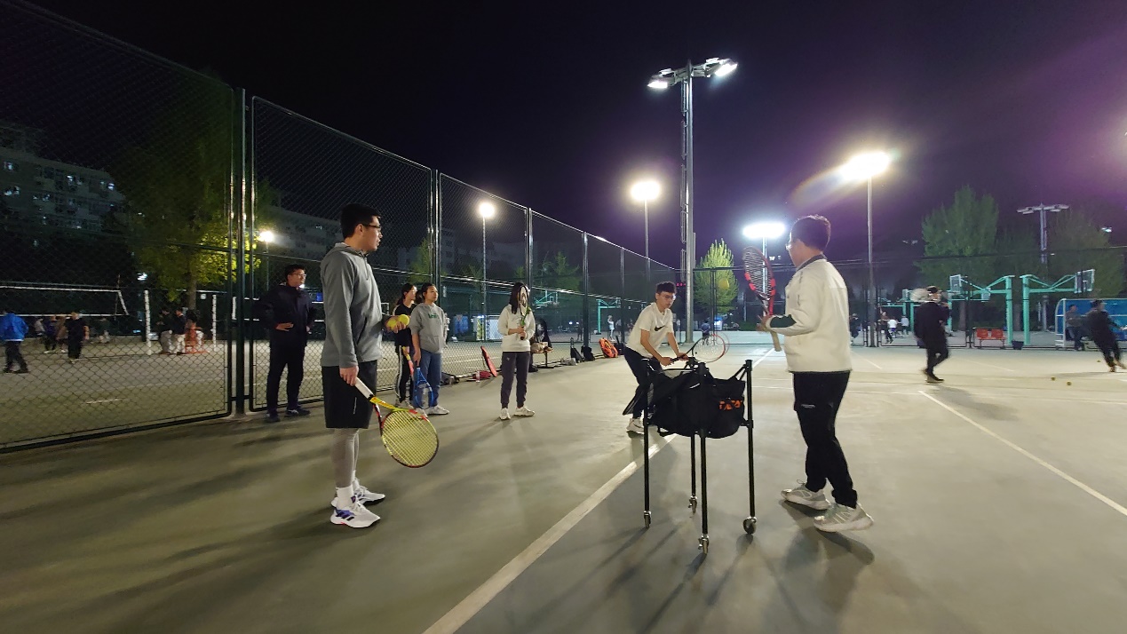 社团在学院路校区周六上午使用两片室外网球场开展活动,在沙河校区周六晚上使用两片室外网球场开展活动。日常活动除了上文提及的面向初学社员和较高水平的社员的训练,还会不定期进行自由比赛,给社员一个适应比赛压力的机会。